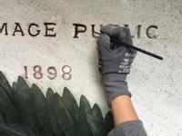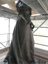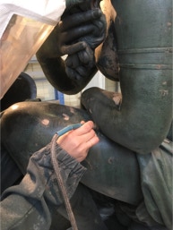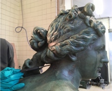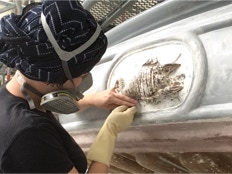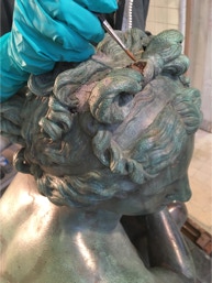 Mise à jour des modelés sous l’épaisse peinture déposée lors de la restauration de la fontaine dans les années 1970