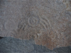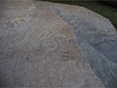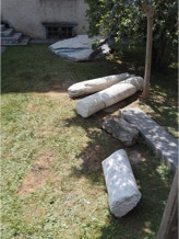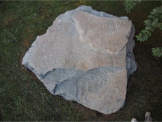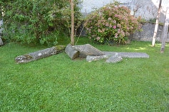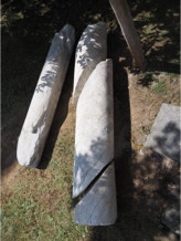 Pétroglyphe de Téberne (granite, âge du Bronze) et fragments de colonnes (marbre, antiquités gallo-romaines), Musée des Beaux-arts de Pau, dépôt au Musée d’Ossau, Arudy.