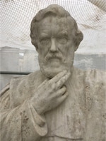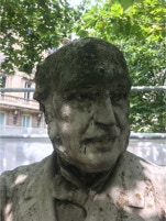 Monument à Pelletier et Caventou, surmonté de La Fièvre, par Pierre Marie Poisson, pierre calcaire, 1951, rue de l’Abbé de l’épée, Paris, Ve arrondissement