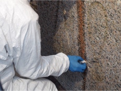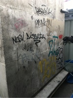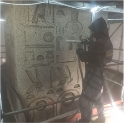 Micro-sablage d’une partie du socle recouvert de graffiti