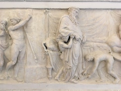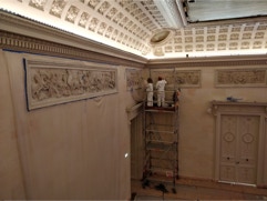 Douze bas-reliefs, scènes mythologiques, réalisés par les élèves de François Devausges à l’école de Dessin de Dijon, XVIIIe siècle, terre cuite peinte, salle des statues, Musées des Beaux-arts, Dijon, Ca992 à Ca1003